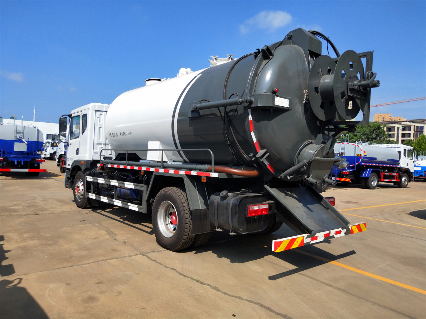吸污車采用國內技術領先的吸污專用泵,吸力大,吸程遠,特別適合用于下水道內的淤積物的抽吸、裝運和排卸,尤其是可吸下水道泥漿、淤泥、石子、磚塊等較大物體、含水量較小等物質。抽滿污(糞)罐體時間:≤5min,吸程:≥10m。自吸自排,壽命長,工作速度快,運輸方便。吸污車的排放有加壓排放和自流排放兩種方式,吸污車自吸自排,后蓋可打開并自卸罐體中雜質,抽吸效率高、自吸、自排及直灌等特點,操作快速、簡便 。適宜于大、中、小城鎮環衛、市政部門使用。 配德國進口18兆帕的高壓清洗水泵 ,可以對下水道搜通