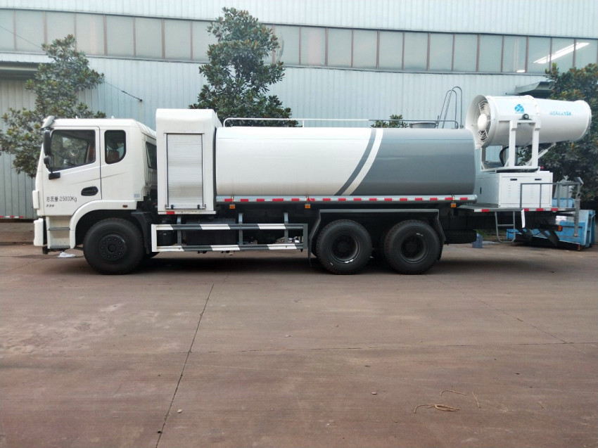 抑塵車吸程≧7米,灑水寬度≧14-16米,射程≧25-40米,引水時間<5min,流量60m3/h。前沖(噴)、后灑、帶側噴(花灑)、帶后工作平臺、平臺上安裝綠化灑水高炮(炮噴射形狀可調節:直沖、大雨、中雨、毛毛雨、霧狀、可連續調節,360°旋轉),配消防接口,自流閥,濾網,帶自吸自排功能。配備大功率專用灑水泵,泵可自吸自排,安裝過濾網,帶消防接口,可通過消防栓進水,帶自流閥,此車尾部加裝大功率農藥噴灑炮,噴灑狀態霧狀,有效射程15-45米,外部平臺帶獨立的機組。