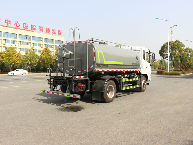 標準配置灑水車主要裝備有:前沖(沖洗公路路面)、后灑(公路路面養護)、側噴、高位側花灑(路邊綠化帶優化);后工作平臺高壓水炮,可調節成柱狀,射程≥28m;也可調節成霧狀,射程≥30米,水泵自吸高度:≤7m,灑水寬度:≥15m。側防護網,自流閥,消防接頭。灑水車水泵為常壓水泵,功能可以抽水、排水。另外根據用戶要求,可加消防泵、噴霧機、農藥卷盤、農藥柱塞泵。罐內可以做防腐防銹、電磁閥氣動閥自動放水等****,以滿足不同用戶需求。