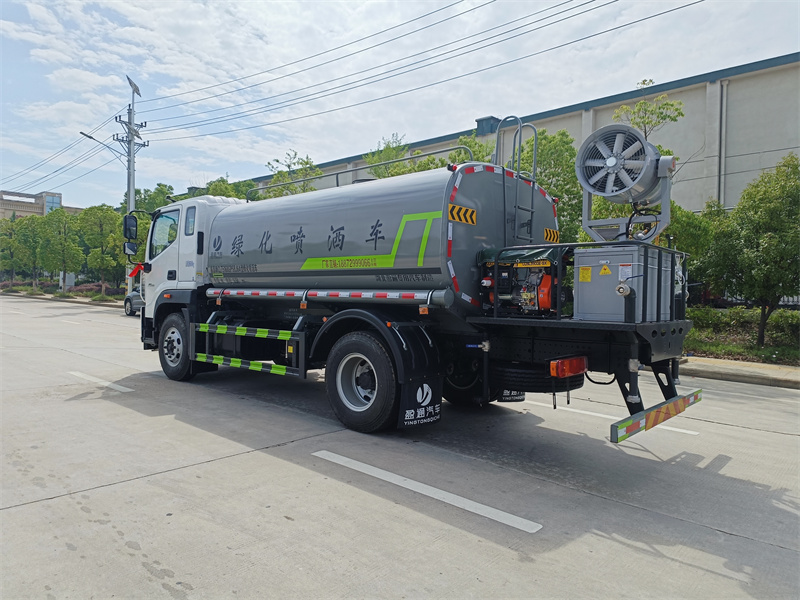 1.產品簡述:縱昂牌 CLT5168GPSBJ6A 型綠化噴灑車標配前噴(鴨嘴)、后對沖、 后灑、側噴、后置式工作平臺,平臺上配置綠化水炮(可 360°旋轉,既可以調 成柱狀,也可以調成霧狀),配備優質大功率專用灑水泵(可自吸自排,可從河 里或池塘抽水到罐體),取力器,雜物過濾網,消防接口,自流球閥系統、取力 器、球閥、濾網均為國家標準產品,主管道加粗,法蘭墊、法蘭盤加厚,大通徑 球閥。整體具備性能優良安全可靠、效率高、流量大、維修方便等特點