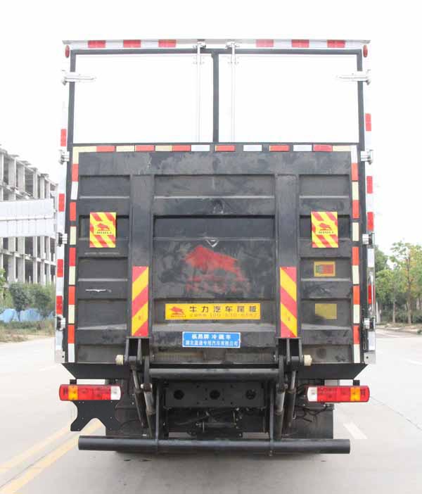 福田ES7冷藏車該車用于冷藏運輸的廂式汽車,裝備有隔熱結構的車廂和制冷裝置.貨廂頂部封閉,不可開啟.安裝液壓尾板,液壓尾板收起狀態的水平長度為300mm,尾板重量為550kg.側/后下部防護裝置,材料均為:Q235碳鋼,連接方式均為:螺栓連接;后下部防護截面尺寸(mm):直徑120,離地高度:480mm.選裝不帶液壓尾板時,側/后下部防護裝置,材料均為:Q235碳鋼,連接方式均為:螺栓連接;后下部防護截面尺寸(mm):120×60,離地高度:480mm.ABS型號為CM4XL-4S/4M,生產廠家為廣州瑞立科密汽車電子股份有限公司.安裝符合規定的具有衛星定位功能的行駛記錄儀.選裝直接供電方式的ETC車載裝置.采用的發動機對應油耗值(L/100km)分別為:F4.5NS6B220/24.40,WP4.6NQ220E61/25.89,YCS06270-60/24.58.選裝其他廠家功率相當不同型號的制冷機組.整車長度/軸距/前懸/后懸對應關系為(mm):10250/5700/1290/3260,9050/5250/1290/2510,9250/5250/1290/2710,9050/5150/1290/2610,9250/5150/1290/2810,8550/4800/1290/2460,8150/4500/1290/2360.隨底盤選裝限速裝置,限速90km/h.