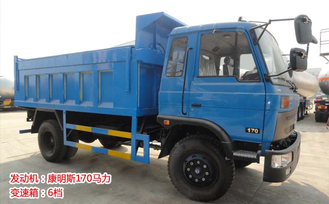 東風145自卸式垃圾車,145經典款駕駛室,康明斯170馬力,變速箱6檔,軸距3.95米,前橋2.8噸,后橋7.65噸,輪胎型號9.00-20,帶方向助力,帶ABS,下防護,斷氣剎。